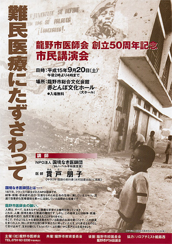 | 講 師: | NPO法人 国境なき医師団 医師 貫戸朋子 |