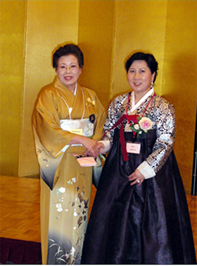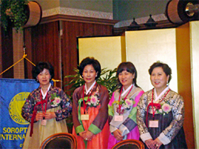 2007年にフレンドシップリンクを締結致しました“SI Ulsan Taehwa”の会員4名が韓国より姫路を訪問されました。昨年は当クラブから韓国ウルサン市を訪問、それに続き本年は日本への訪問となり、お互いに友好を深める良い機会を持つことが出来ました。4名それぞれの色合いが大変美しいチマチョゴリ姿で例会をオブザーブされ、それぞれの言語でソロプチミスト誓約を唱和し、ともにシンフォニーを歌いました。