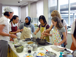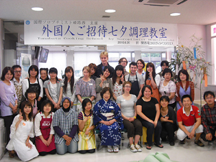 姫路市十二所町にある「関西電力はぴeライフスクエア」にて国際ソロプチミスト姫路西主催の外国人ご招待調理教室をおこないました。姫獨協大学や兵庫県立大学の留学生13名をはじめ、姫路市に住む中学校の英会話教師等、9カ国23名の外国人を招き、短冊を飾りながらしばし日本の風情を楽しんだり、天の川に見立てたそうめん寄せなど、七夕にちなんだ和食のメニューをつくりながら会員と交流を深めました。