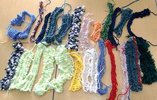 それ以降、学園では指編みが大流行で、皆の力でたくさん作ってつなぎ合わせ大きな作品にし、老人施設などに寄贈しようという方向に進んでいるようです。どのような大作になるのか楽しみです。