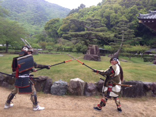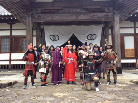 龍野城では留学生が様々な甲冑体験をしました。兜や鎧の重さに驚いたりお互いに様々な構えで写真を撮ったりと楽しんでいました。