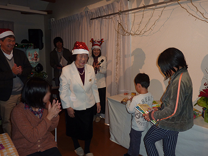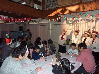 贈呈式後のクリスマス会では、本物のモミの木をプレゼントして、手作りのオーナメントに子供達に夢を描いてもらいツリーに飾り付けたり、絵本の朗読、キャンドルサービスやクリスマスソングの合唱など、厳かな雰囲気の中、楽しいひと時を過ごしました。