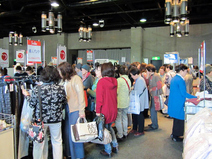 バザー会場では百貨店や専門店、福祉施設など約40の協賛店に加え、会員による持ち寄り品コーナーも行列ができました。お茶席やリラクゼーションエリアもあり、多くの来場者で賑わいました。