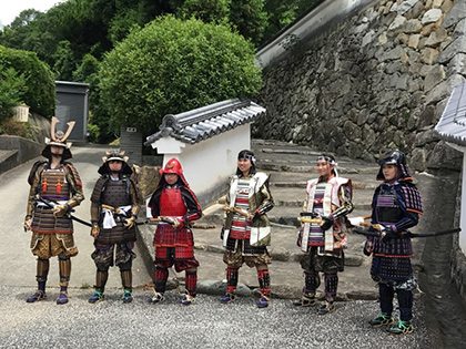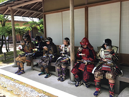 甲冑を身に着けながら、鎧は装う(着るは切るを連想)と言い、数え方は一領と言う事など、戦国時代の文化などを学ぶ貴重な体験でした。